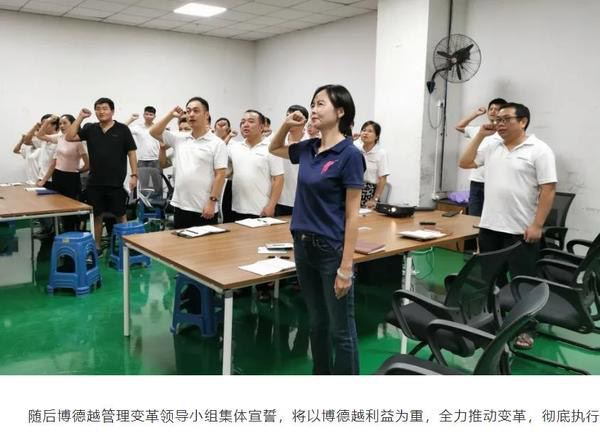 随后博德越管理变革领导小组集体宣誓,将以博德越利益为重,全力推动变革,执行决策,完成博德越使命,凝聚新力量,开创新未来。