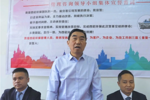 项目启动会上,四启环保的领导发言,表示对于此次改善给予高度期望,四启环保的目标是打造具有核心竞争力的高节能泥浆泵综合解决方案服务能力,成为中国高节能泥浆泵综合解决方案服务平台,希望通过此次改善能够助力四启环保更上一层楼,实现三年内营收超过5亿元,3-5年内实现IPO。同时启动会上,扬州四启环保设备有限公司的领导给远大方略项目组颁发授权书,授权远大方略正式启动四启环保《经营管理系统提升》咨询项目。