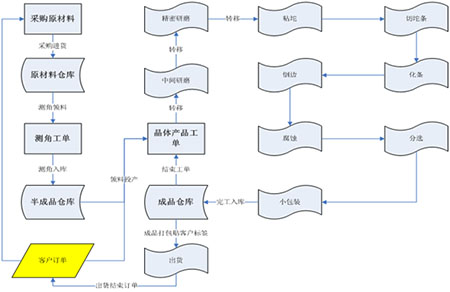测角工艺对物料角度的分选,分选后对不符合角度的物料需要回仓管理;原材料需要有特征码(如:角度参数)及特征分类库存管理。