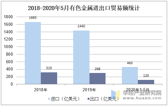 2020年1-6月,采选业投资收益同比上升306.9%,收益急剧上升。从2018年禁止洋垃圾入境以来,有色金属的进出口贸易额就开始下跌,虽然2019年金川集团、中铝集团、万宝矿产等海外项目顺利投产达产,中铝集团几内亚铝土矿项目矿石开始供给国内,但是仍然止不住下跌的趋势。截止至2020年5月有色金属贸易总额580亿美元,同比下降24.5%,其中进口额459.7亿美元,同比下降28.7%,出口额120.3亿美元,同比下降3%。