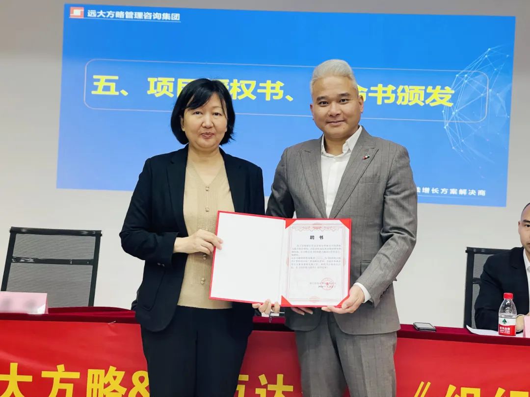 会上,胡总分别为远大方略精益管理项目组和组织能力提升项目组颁发授权书和聘书,同时为两个项目组的核心成员颁发任命书,指定各版块的负责人,明确职责,强化责任,确保项目的有效落地。