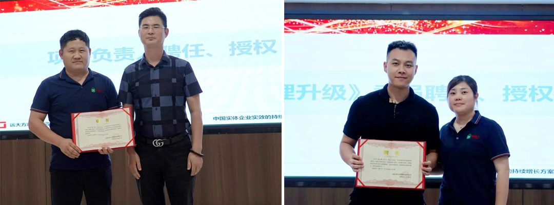 会上,潘总和李总对远大方略项目组进行了聘用授权,为项目小组关键人员颁发了聘书,并签订誓言集体宣誓,鼓励大家全力以赴投身变革,共同创造更具竞争力的企业。