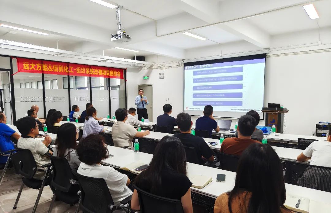 在项目启动会上,项目组老师首先对信鹏化工选择远大方略表示感谢,并指出当前化工行业正处在精细化、智能化转型的关键期。面对管理粗放、人才留存难、协同效率低等发展瓶颈,企业需主动优化组织力,将经验沉淀为内生动力,以提升竞争力。信鹏团队开放进取的变革姿态,体现了管理层的战略远见。