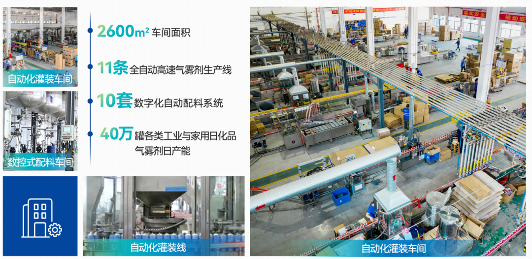 信鹏化工拥有甲、乙、丙类立体仓库各一栋,2022 年投入落成 3600 平方米的专业级气雾剂化妆品车间,符合 GMP 车间 10 万级的洁净度标准要求,同时搭配 4 条化妆品专用全自动气雾剂充填生产线及乳化配料系统;公司拥有一支二十多年气雾剂研发生产经验的管理团队, 技术和研发实力雄厚,为珠三角内为数不多的在化工园区内合规的专业气雾剂制造基地;企业拥有自主进出口权,已取得危险化学品生产许可证、化妆品生产许可证、农药生产许可证、ISO9001、ISO14001 质量管理体系,IATF16949、ISO22716体系、GMPC 等资质认证。