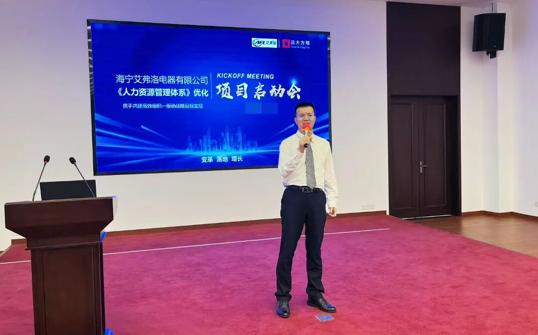 近日,海宁艾弗洛电器有限公司(以下简称“艾弗洛”)携手远大方略启动《人力资源管理》咨询项目,此次项目旨在全方位构建完善的组织结构和岗位体系,明确各岗位职责与权限,实现岗位职能的科学合理分工;设立明确目标、同时搭建科学考核与激励机制,充分激发员工潜能,打造高效组织,支撑战略目标有效落地。