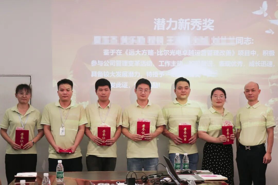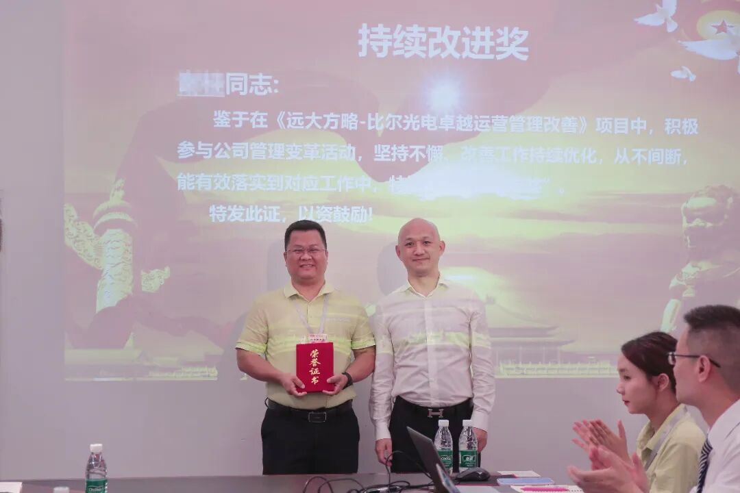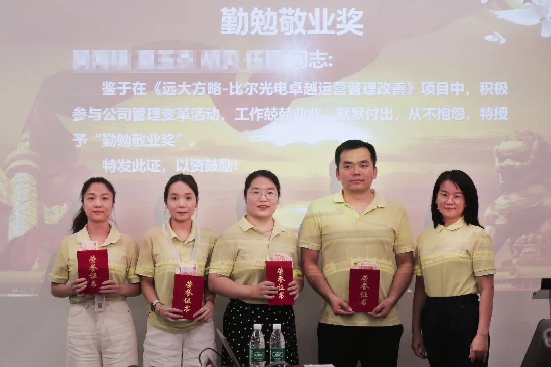 在一期改善过程中,对于表现优秀的个人,也给予了表彰,比尔光电领导为表现突出的同事颁发了荣誉证书。