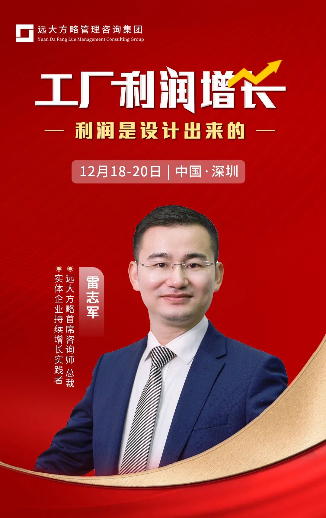 火热报名中!12月18日-20日——雷志军《工厂利润增长》研修课