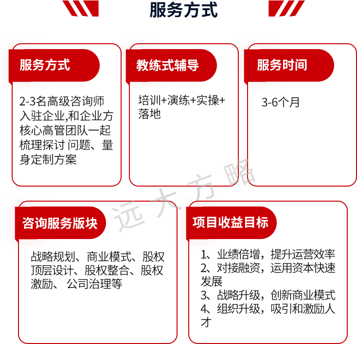 咨询老师现场辅导,远大方略公司平台定期评审项目,项目的方向、重点和效果。